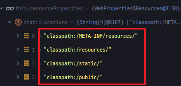 ์ด์ ๊น์ง ํ์ตํ๋ ๋ด์ฉ์ผ๋ก๋ ์ ์ ๋ฆฌ์์ค์ ๋ํ ์ค์ ์ ์คํ๋ง ๋ถํธ๊ฐ ๊ธฐ๋ณธ์ผ๋ก ์ค์ ํด ์ฃผ๋ฉฐ, WebProperties์ ์ ์ ๋ฆฌ์์ค์ ๋ํ ๊ฒฝ๋ก๊ฐ ์ค์ ๋์ด ์๋ค๊ณ ์๊ณ ์์์ต๋๋ค.