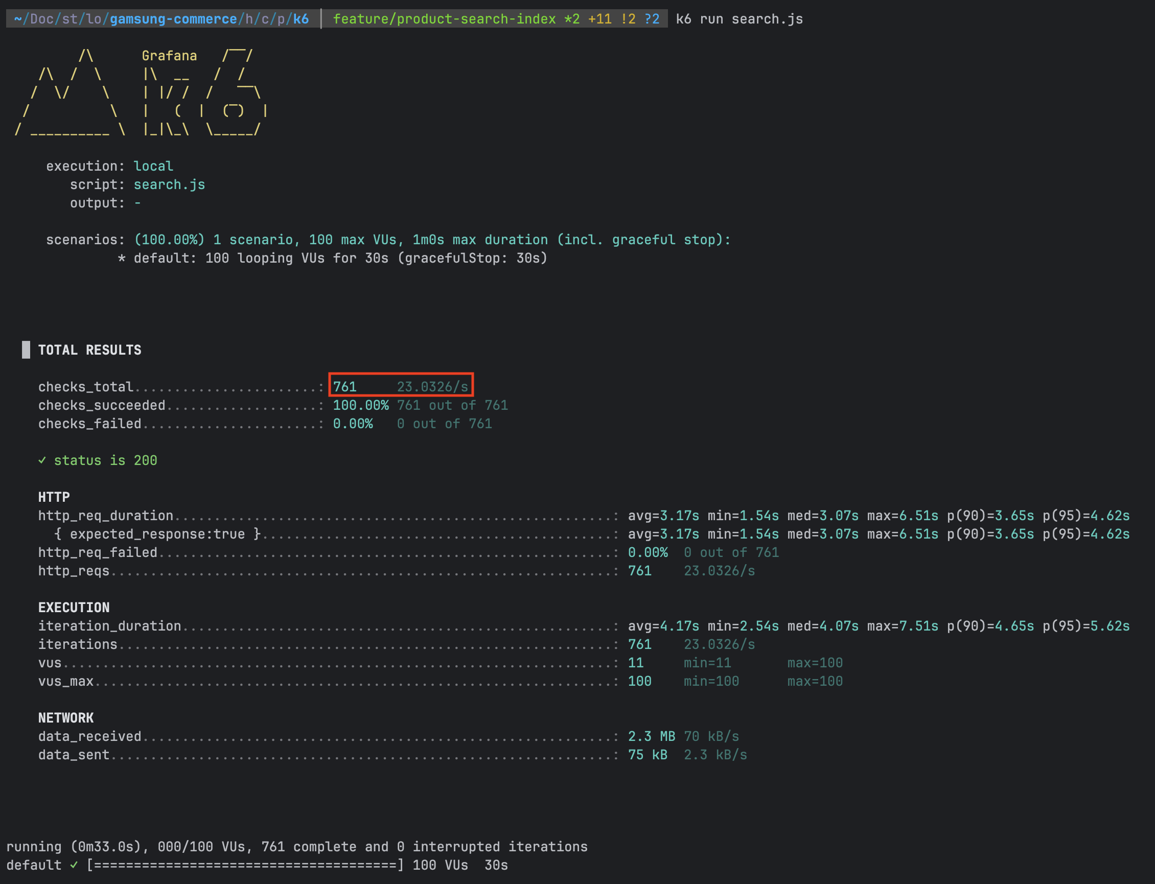 k6를 통한 부하 테스트 결과, 23 TPS로 CONT 집계 쿼리에 비해 약 121배나 성능이 개선된 것을 확인할 수 있다.