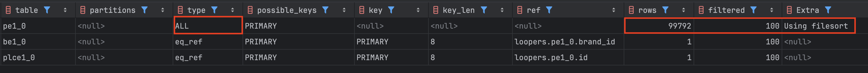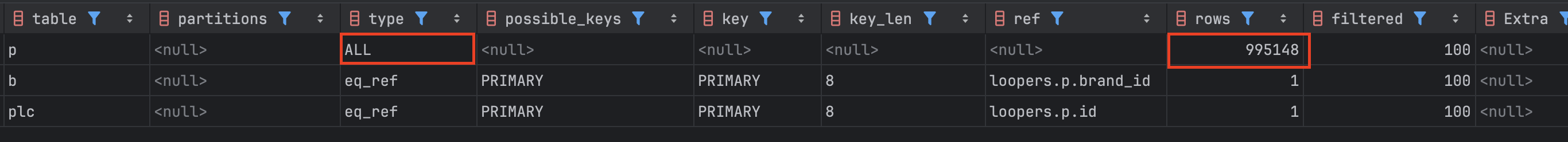 실행 계획 Extra에서 주목해야 할 값들