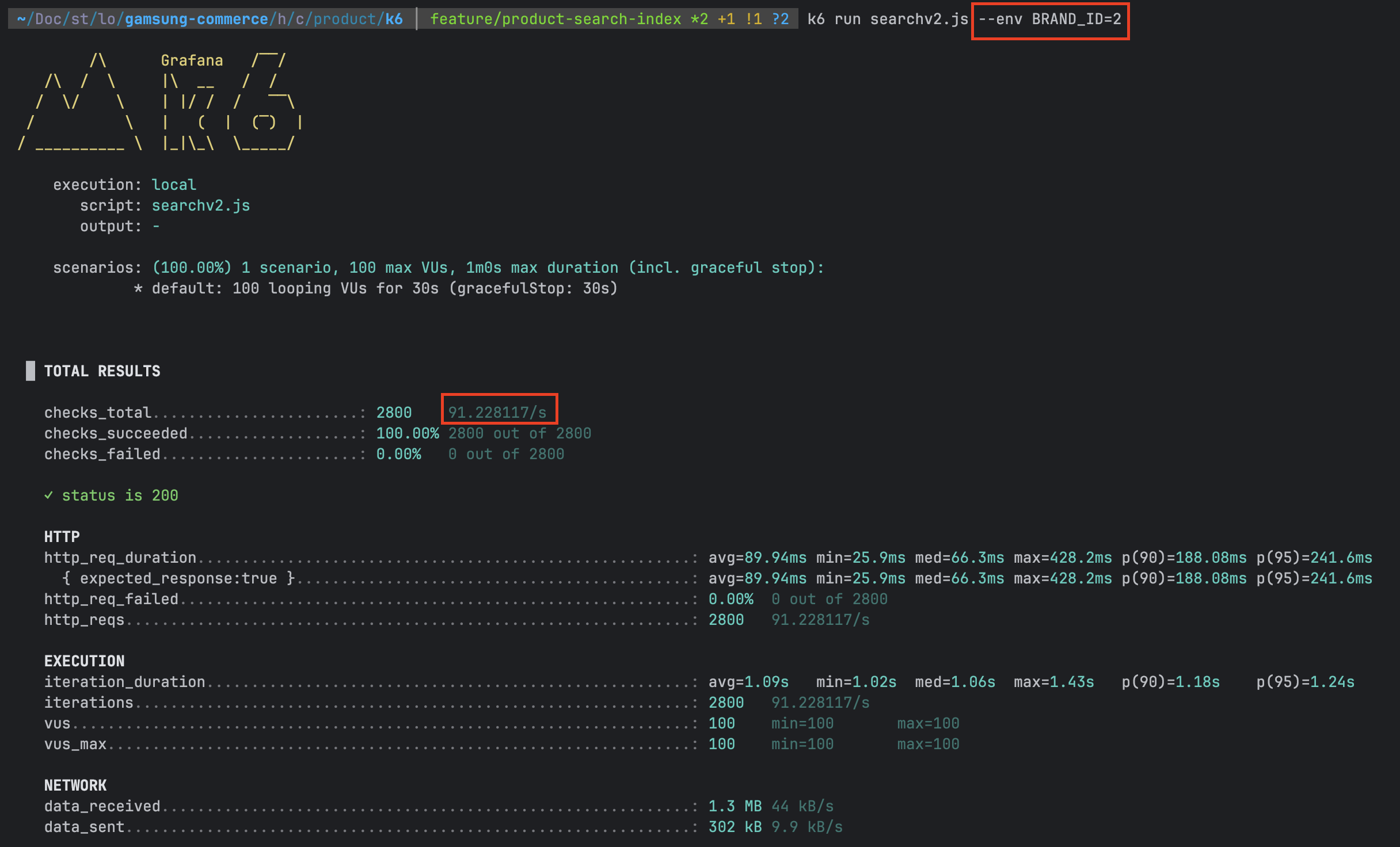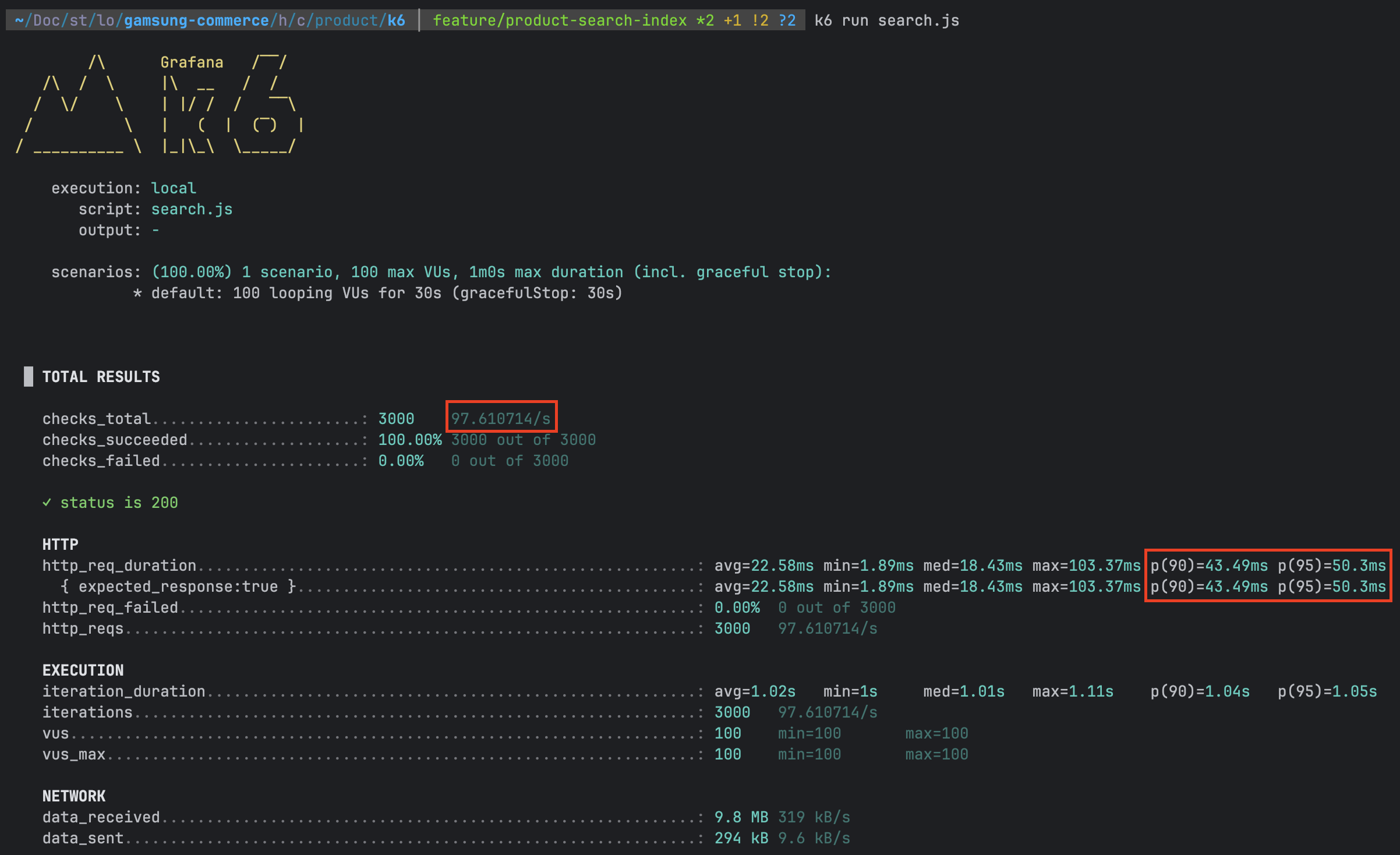k6를 통해 다시 성능을 확인해 보면 TPS 자체는 크게 달라지지 않았지만 p(90), p(95)가 크게 향상된 것을 확인할 수 있다.